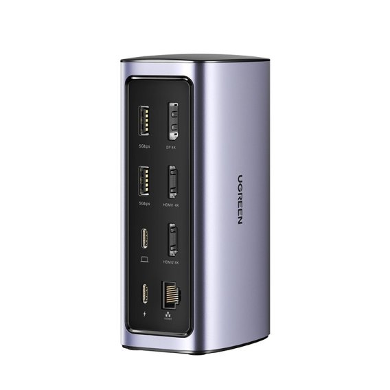 Współczesne laptopy posiadają zbyt mało portów, aby obsłużyć wszystkie dodatkowe urządzenia, których potrzebujesz. Wielofunkcyjna stacja dokująca od Ugreen oferuje wsparcie użytkownika w każdym aspekcie dzięki 12 portom rozszerzeń takich jak USB C, USB, HDMI, DP, RJ45, AUX, SD, TF.