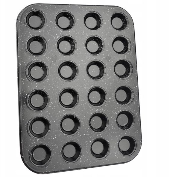 Forma do pieczenia z powłoką non-stick pozwala na przygotowanie smacznych muffinek. Powłoka zapobiega przywieraniu, dzięki czemu muffinki zachowują swój kształt. Odpowiednio wyprofilowane otwory gwarantują równomiernie wypieczone babeczki.