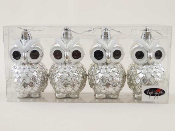 Bombka zawieszka 4szt. SOWA SREBRO TG44014-1