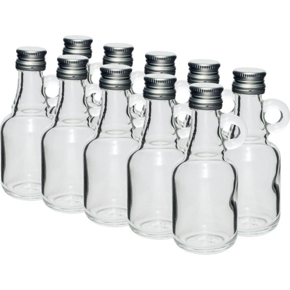 Zestaw 10 buteleczek, każda o pojemności 40 ml, w komplecie z zakrętkami fi18. Buteleczki są idealne do przechowywania próbek nalewek czy destylatów. Komplet butelek napełnionych domowymi trunkami idealnie sprawdzi się jako prezent dla bliskich.