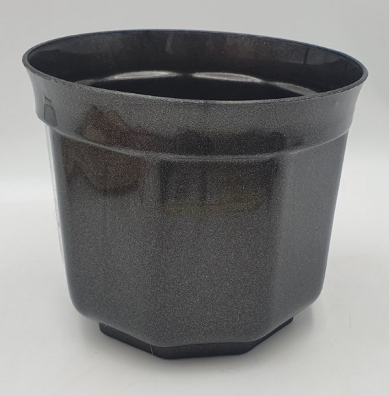 Doniczka w kolorze grafitowym wykonana z tworzywa sztucznego imitującego ceramikę. Doskonale dopasuje się do każdego wnętrza.