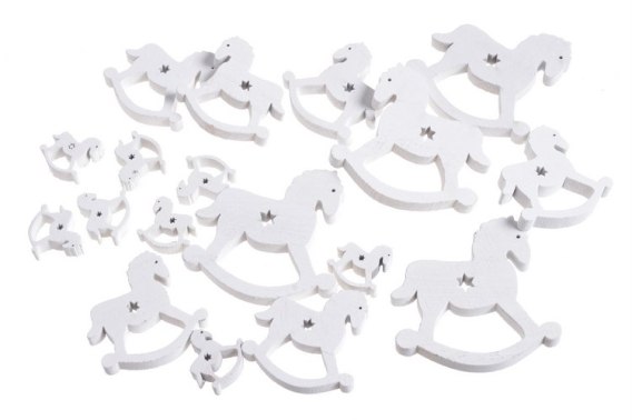 Drewniane wykrawanki - koniki na biegunach białe mix - 2,5cm - 7cm, 18szt 129CAN7827W