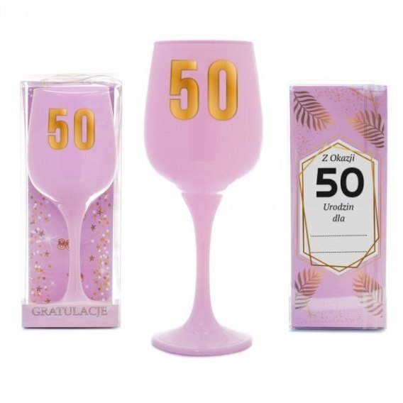 Kieliszek urodzinowy do wina różowy w ozdobnym opakowaniu - Z Okazji 50 Urodzin dla...