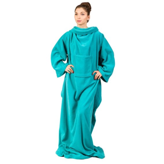 Chłodne jesienno-zimowe wieczory spędzane w domu mogą być bardzo przyjemne pod warunkiem, że zaopatrzysz się w miękki i cieplutki kocyko-szlafrok! Jest to połączenie ciepłego koca z miękkim szlafrokiem, które sprawi, że nie zechcesz ruszyć się z kanapy przez cały wieczór! To wyjątkowe ubranie ma wygodną kieszeń, w której zmieści się pilot do telewizora i kilka innych przydatnych podczas wypoczynku drobiazgów.