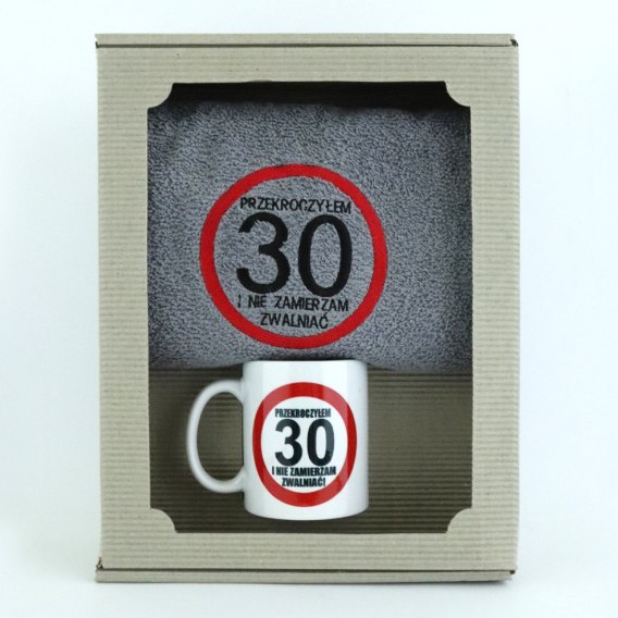 Kpl.ręcznik+kubek w pudełku ''PRZEKROCZYŁEM 30..''