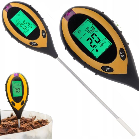 Kwasomierz do gleby to urządzenie służące do pomiaru pH, wilgotności, nasłonecznienia oraz temperatury gleby. Pomiar pH pozwala określić kwasowość lub zasadowość gleby, co jest istotne dla prawidłowego wzrostu roślin i dostępności składników odżywczych. Urządzenie jest przeznaczone do użytku zarówno we wnętrzach, jak i na zewnątrz.