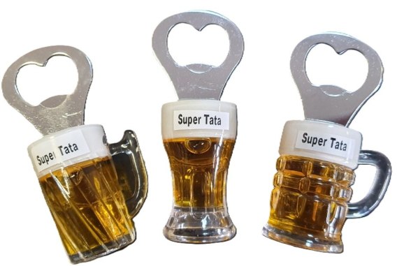 Otwieracz do butelek piwa kapsli ozdobny magnes na lodówkę Super Tata 2w1 KUFEL