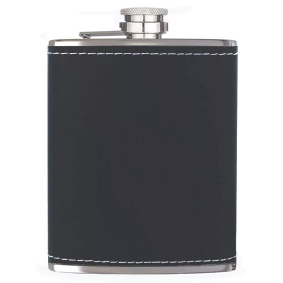 Piersiówka 8 OZ 240ml stalowa nierdzewna czarna skóraXJ4684