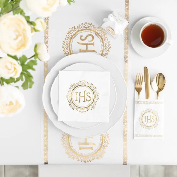 Serwetki komunijne IHS biało-złote 10szt. 127544