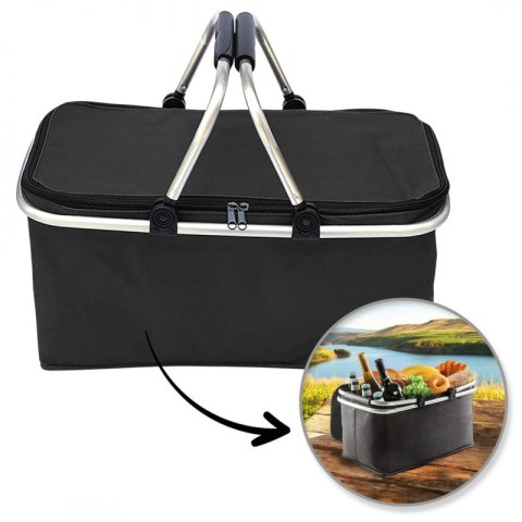 • Składany kosz termiczny na zakupy, piknik czarny 47x27x23cm KP01CZ