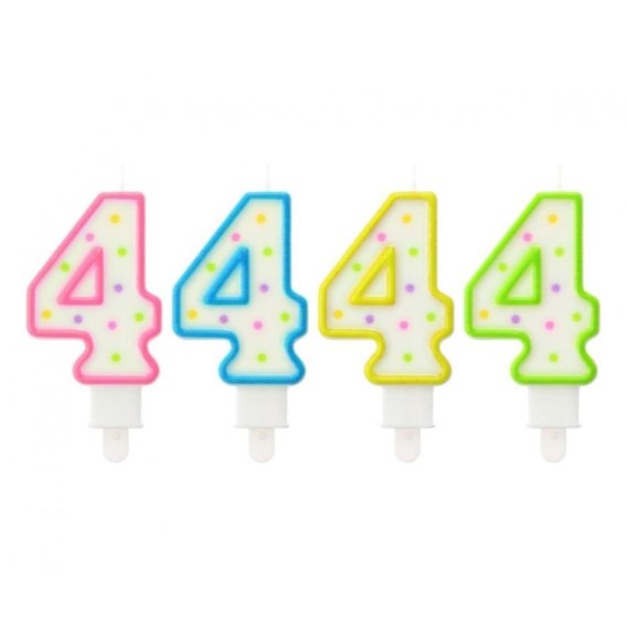 Świeczka cyferka z kropeczkami 4, 7,5 cm