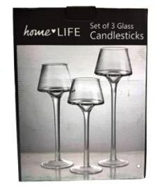 Świecznik lampion duże glamour zestaw 3 szt szklane