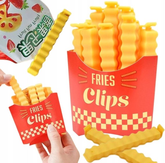 ✅ Ciekawy wygląd - w opakowaniu znajduje się aż 12 klipsów, które wyglądają jak frytki